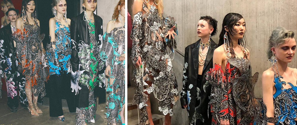 Just days after Hannah showed her graduate collection on the runway at the Central St Martins degree show, this week singer Rina Sawayama wowed onlookers in Hannah’s exquisite hand-painted tattoo dress at the Elle List 2018. Hannah spoke to us about her Fashion Futures experience, university and her future plans